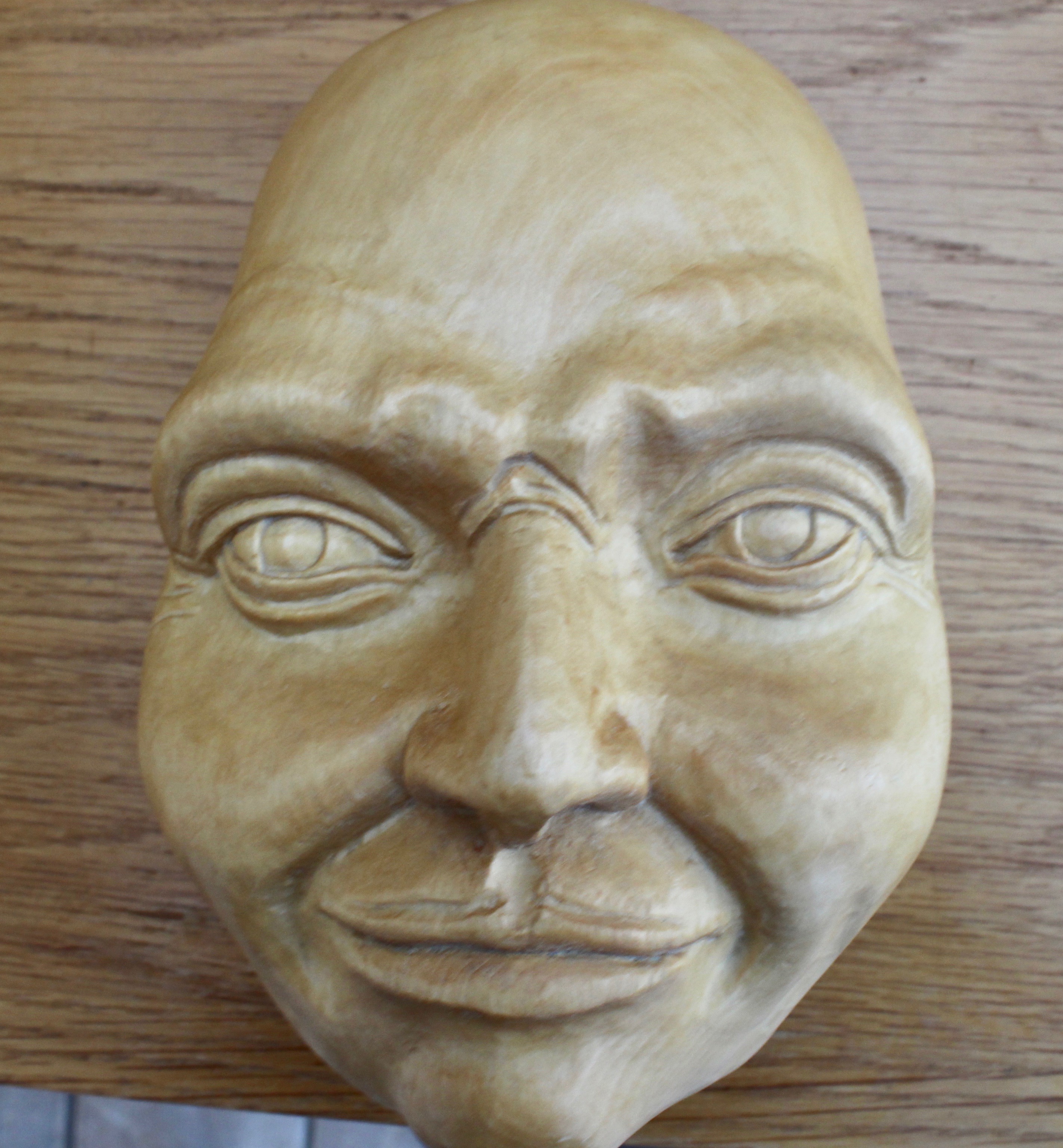 Recently I have. been lucky enough to be able to spend time carving with Master Woodcarver and Sculptor Michael Painter. In September 2017 I spent two days carving with him on a course he was tutoring in Penrith. I wanted to start to learn about carving the human face and Michael is second to none in this skill. He first ensured that all of the small group of students could use chisels safely, but we were quickly able to go onto individual projects. I carved my first human face with carefully structured guidance from Michael.